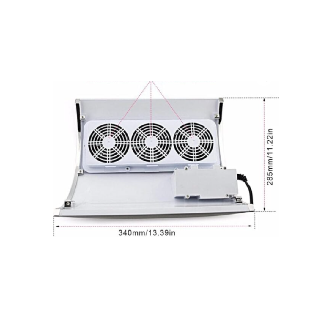 Snažan aspirator za prašinu sa tri ventilatora (36W) namenjen za efikasno uklanjanje prašine nastale pri obradi noktiju i gela.